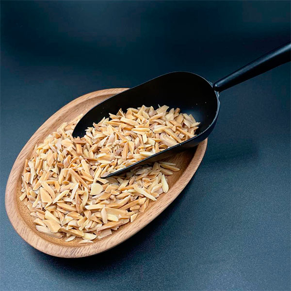 Обжаренные кусочки миндаля в виде палочек, цвета слоновой кости, со вкусом и запахом миндаля. Предназначены для украшения кондитерских изделий и мороженого, может применяться в гастрономии.