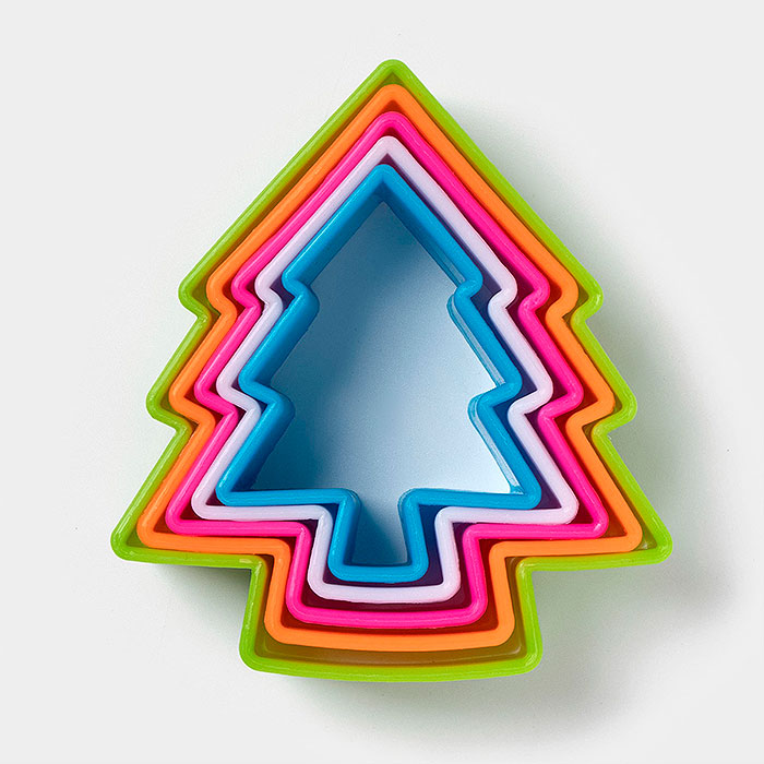 С помощью этих резаков можно создавать печенье в виде елочек разных размеров. Готовую выпечку можно покрыть глазурью, посыпкой, прорисовать кондитерской краской детали. Они изготовлены из высококачественного материала, просты в использовании, имеют компактный размер, подходят для любых видов теста.
